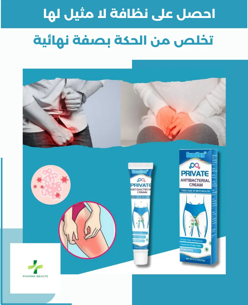 🔹 كريم التخلص من الحكة والبكتيريا 🔹 استعد راحتك مع كريم التخلص من الحكة والبكتيريا في المناطق الحساسة! 🌟 ✅ **فعالية فورية**: يخفف الحكة ويقضي على البكتيريا بسرعة. ✅ **تركيبة لطيفة**: آمن وملائم للبشرة الحساسة. ✅ **راحة تدوم**: يمنحك شعورًا بالانتعاش والراحة طوال اليوم. اختاري الراحة والثقة مع كريم التخلص من الحكة والبكتيريا! 💧 ✨ اطلبه الآن واستمتعي ببشرة صحية ونظيفة ✨